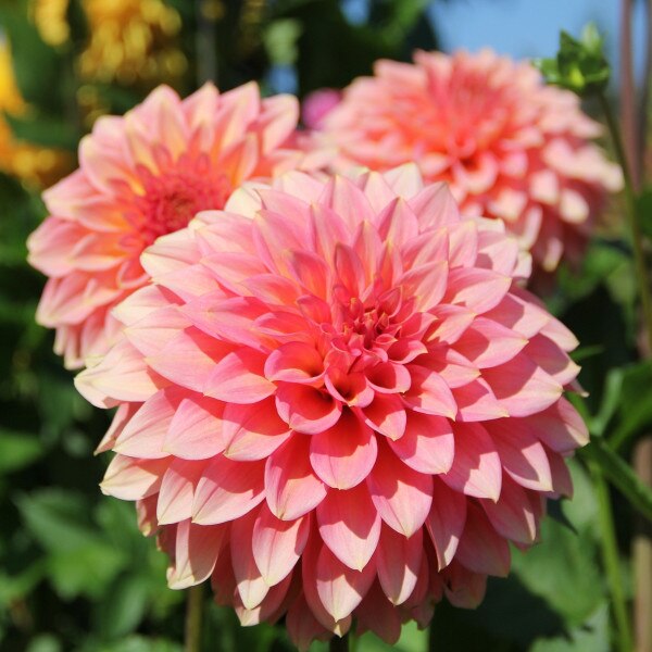 A highly productive and reliable workhorse for the cutting garden, 'Nathalie G' is a gorgeous formal decorative or ball-shaped dahlia, producing perfectly rounded blooms approximately 3-4 inches in diameter. The color is a soft, warm blend of melon-pink, rosy salmon, and peach-pink, often dusted with a light lavender and radiating from a subtle yellow base. Despite being on the shorter side (2.5-4 feet), it is celebrated for its excellent, long stems and prolific flowering, making it an ideal choice for both garden beds and consistent bouquet fillers.