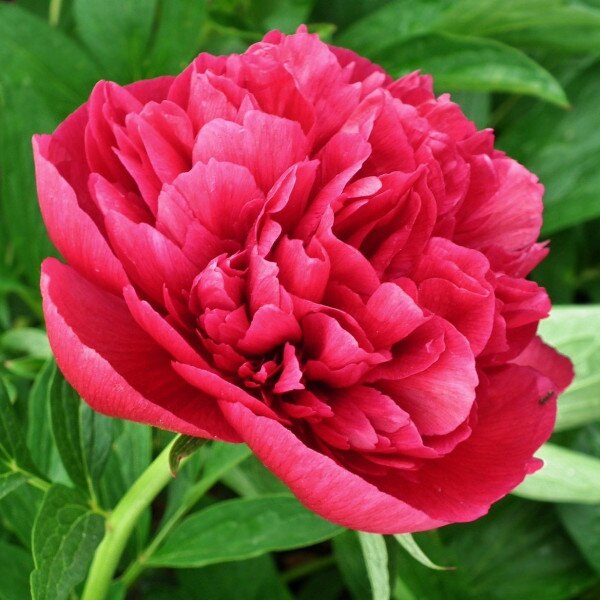 A vibrant, fully double peony with rich, ruby-red petals. This bomb-type peony is a classic for a reason, offering large, perfectly formed blooms on strong stems, making it an excellent choice for a bold statement.