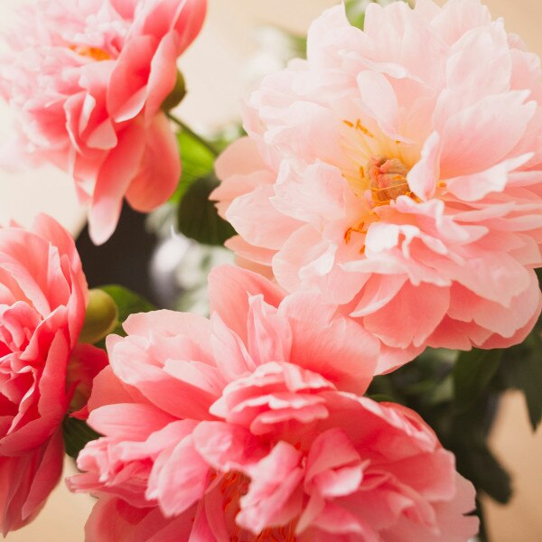 A vibrant salmon-orange peony with a single to semi-double form. This unique, luminous color adds a sophisticated and sought-after warmth to spring bouquets.