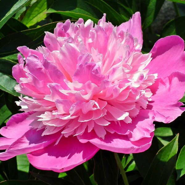 1 CASE = 75 UNITS. With layers of soft pink petals, 'Pink Pompadour' is a stunning bomb-type peony. Its fluffy, globe-shaped blooms are a charming addition to any garden or arrangement. The vibrant pink petals surround a full center, creating a delightful and romantic focal point. A reliable and beautiful choice for a lush, mid-spring display.