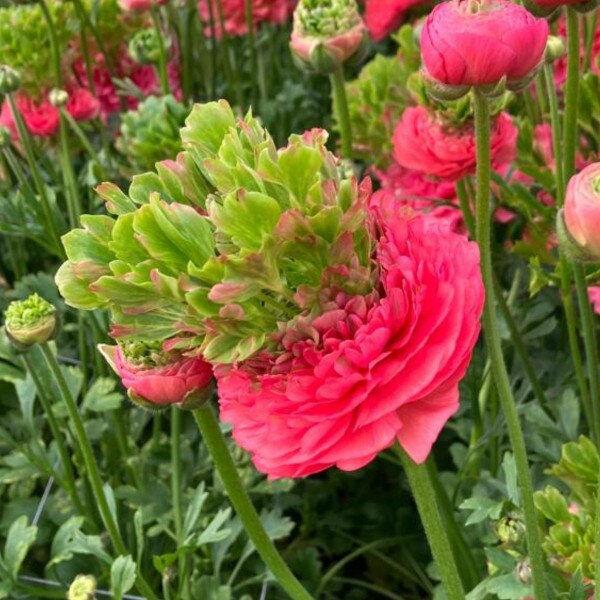 Get ready to swoon! Ranunculus 'Crown Sisteron' is the crown jewel of the garden. Layers upon layers of soft, ethereal, peachy-pink petals cup upward to form a magnificent, fluffy bloom unlike any other. This romantic novelty is a true showstopper that adds whimsical texture and high-end flair to any bouquet.