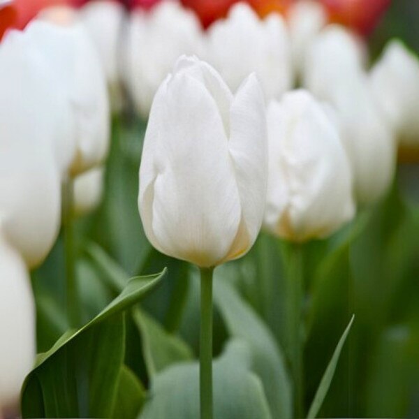 Package contains 100 bulbs Cup-shaped blooms atop sturdy stems Blooms mid season Slightly shorter stature makes them excellent for pot forcing